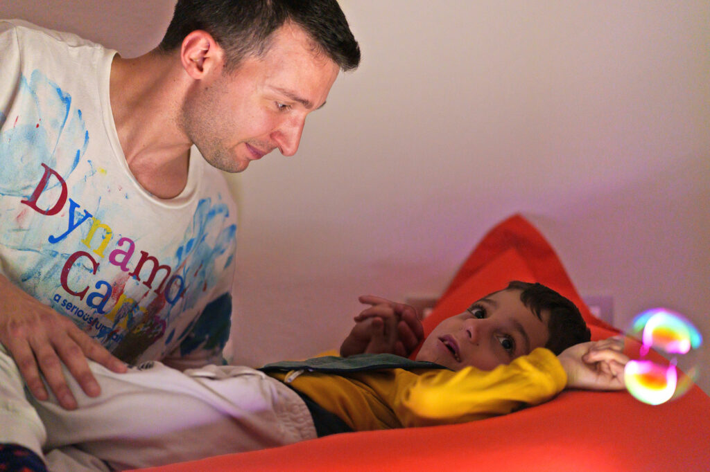 Per comprendere il significato più autentico delle cose non bisogna mai fermarsi alla superficie. Chi entra a far parte dello Staff Dynamo lo sa bene. Quando inizia a frequentare i corsi di formazione tutto appare improvvisamente più chiaro. Badate bene: nessuno deve studiare tomi di psicologia, né sostenere esami. Per “accendere la lampadina” basta semplicemente osservare alcuni video ripresi durante le quotidiane attività di Dynamo, esempi di vita vissuta. Ecco quali sono gli aspetti che emergono subito con evidenza: 1) Il ruolo primario dello Staff non è di mero controllore, ma quello di far divertire i Camper, divertendosi a sua volta. Se, per esempio, ci si trova davanti a un bambino che gioca a stare in equilibrio su un cubo morbido poco stabile, non bisogna precipitarsi verso di lui per farlo scendere, nel timore che si faccia male. Se può essere messo in sicurezza, si può lasciargli fare ciò che desidera in quel momento e, perché no, dondolarsi assieme a lui, divertendosi. 2) Il bisogno non è solo dove la disabilità è più evidente. Se i Camper apparentemente più bisognosi di attenzioni sono già sotto il controllo di uno o più Dynamìci, un ulteriore supporto sarebbe inutile. è opportuno allora osservare gli altri, quelli più silenziosi e appartati, provando a intercettare anche le loro necessità. 3) Per notare i dettagli, la collaborazione con il resto dello Staff è indispensabile. Confrontarsi con gli altri permette di amplificare l’attenzione e la sensibilità, di modificare conseguentemente i programmi relativi alla propria attività, ma anche il tuo comportamento, e così coinvolgere tutti di più.