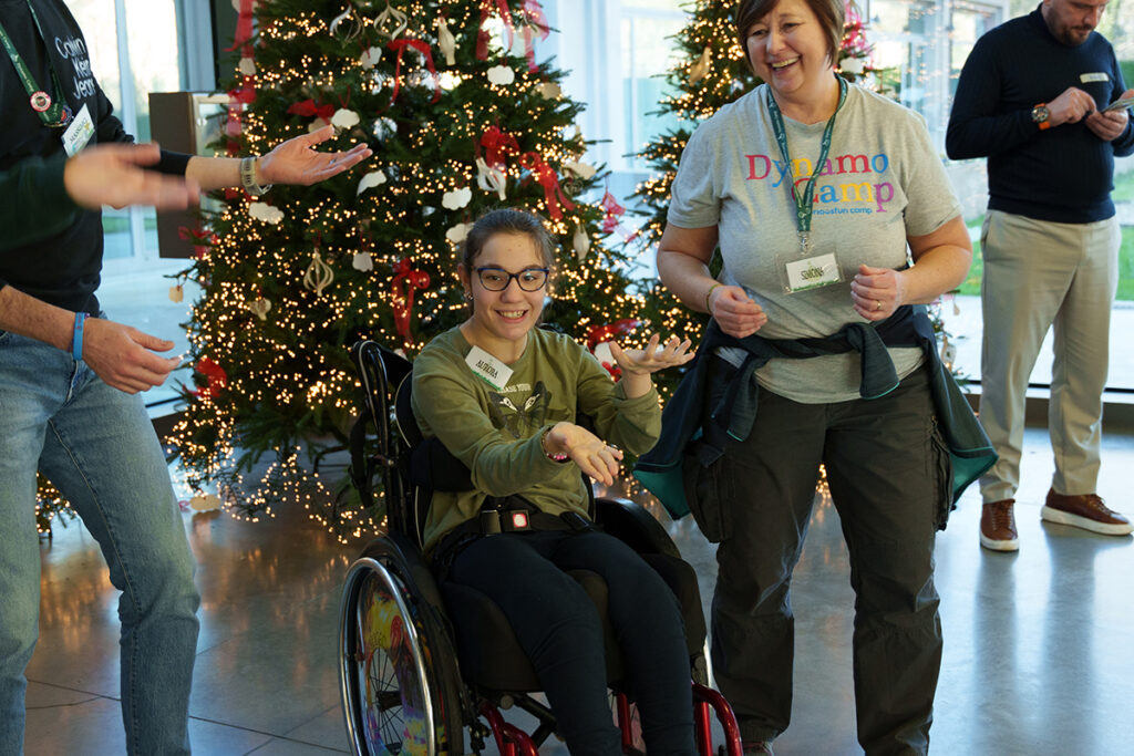 Nelle prime settimane di dicembre i dipendenti di alcune aziende che sostengono Dynamo sono al Camp per vestirlo di addobbi natalizi, attraverso una vera e propria attività di team building gestita da Dynamo Academy: «Pennarelli, cartoncini, forbici, colla e tanta fantasia, in perfetto stile Dynamo», sintetizza Nicoletta Meini, volontaria impegnata anche quest’anno a rendere il Camp ancora più magico per Natale. «A fine giornata lo Staff ci saluta e ringrazia, accendendo tutte le luci degli alberi addobbati: un momento di grande impatto che mi riempie sempre il cuore di gioia». Non solo, Nicoletta trascorrerà al Camp anche il suo secondo Capodanno, vestendo i panni di Dynamìca. «Mi piace viaggiare e il periodo natalizio è ideale per farlo, essendoci molti giorni di ferie a disposizione, ma nella sua semplicità il Capodanno a Dynamo resta dentro più degli altri. Quindi, ho deciso di esserci ancora. Mi è rimasto impresso lo stupore di un papà che, solo al quarto giorno di sessione, ha realizzato che eravamo volontari. Mi ha guardata e, incredulo, ha detto: “Ma voi, invece di andare a sciare con i vostri amici, avete davvero scelto di stare qui con mio figlio gratuitamente?”. Era un uomo riservato, ma in quell’occasione si è commosso, quasi fino alle lacrime. E al momento dei saluti finali ci ha abbracciato con una gratitudine così sincera da lasciarci addosso un’emozione fortissima». Nicoletta racconta che molti volontari fanno addirittura “a gara” per riuscire a partecipare alla sessione di Capodanno. «Festeggiamo in jeans o in tuta da ginnastica, ma permettiamo ai genitori che lo desiderano di prepararsi per la festa. Non è affatto scontato per loro. Quando ci confidano che è stato in assoluto il Capodanno più bello della loro vita, per noi è una carica di energia».